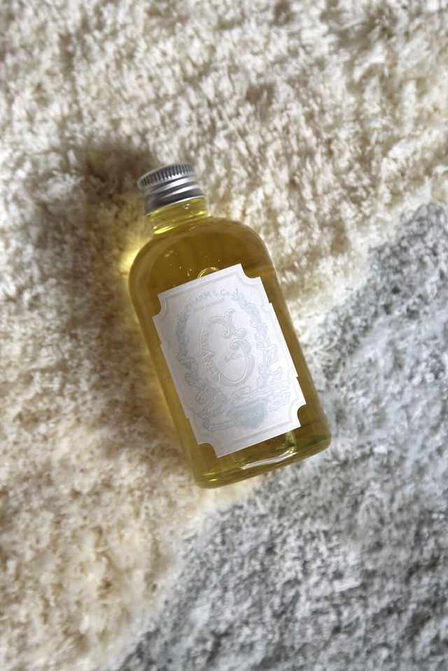 このチャームヘアオイルは一般的なヘアオイルとしての使用はもちろんのこと、少し重めの使用感でスタイリング剤としての使用もお勧めです。