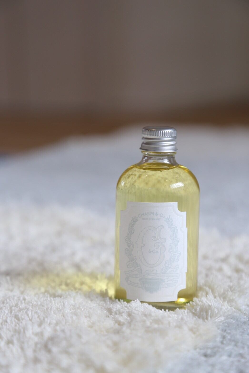 このチャームヘアオイルは一般的なヘアオイルとしての使用はもちろんのこと、少し重めの使用感でスタイリング剤としての使用もお勧めです。